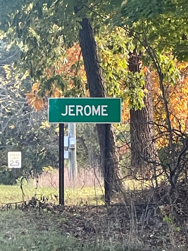 Jerome, Michigan is an unincorporated municipality in Hillsdale County. It’s one of those blink and you’ll miss it places, but sometimes those are the best ones to explore. I mean look at the pop of fall color we found as we entered.