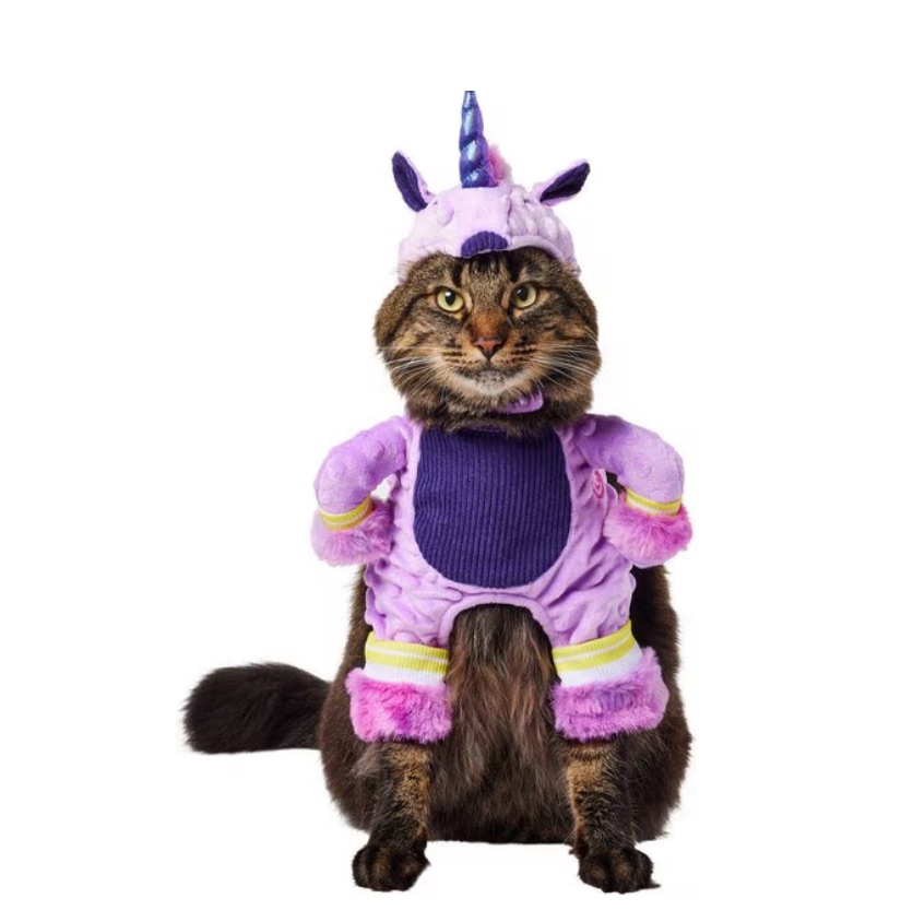 I was obsessed with unicorns as a kid, so why not dress my gender challenged cat up as one now. He has a girl name, Savannah, and we believed he was a boy for 18 months when he went to get fixed. I can totally imagine him learning to use the horn as a weapon against the dog.