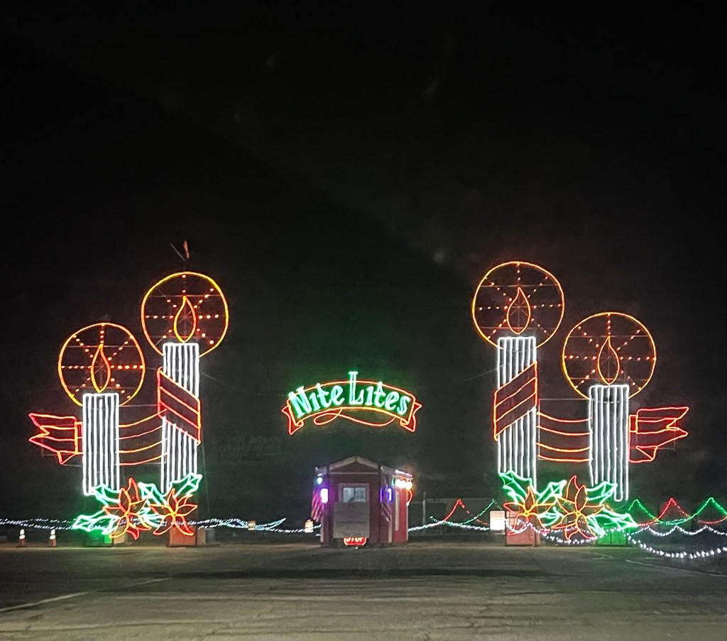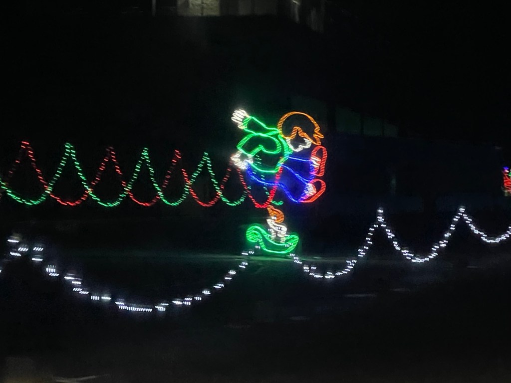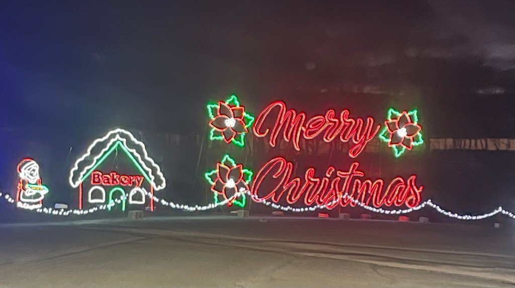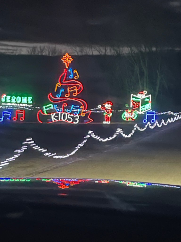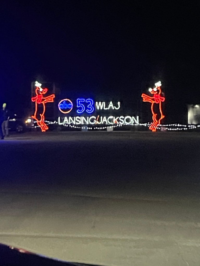 We drive through the Michigan International Speedway that is lit up with Christmas lights.