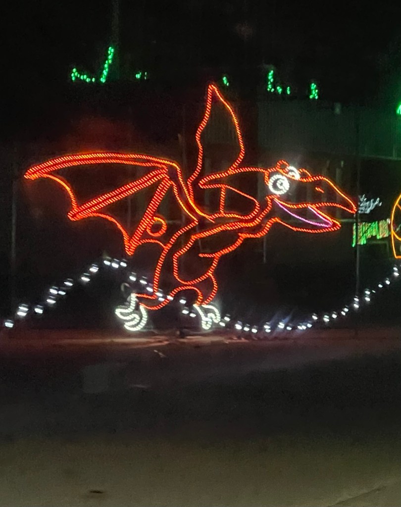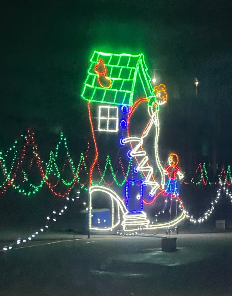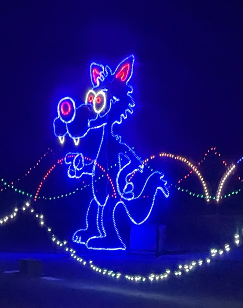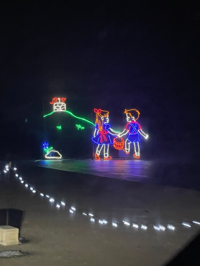 We drive through the Michigan International Speedway that is lit up with Christmas lights.
