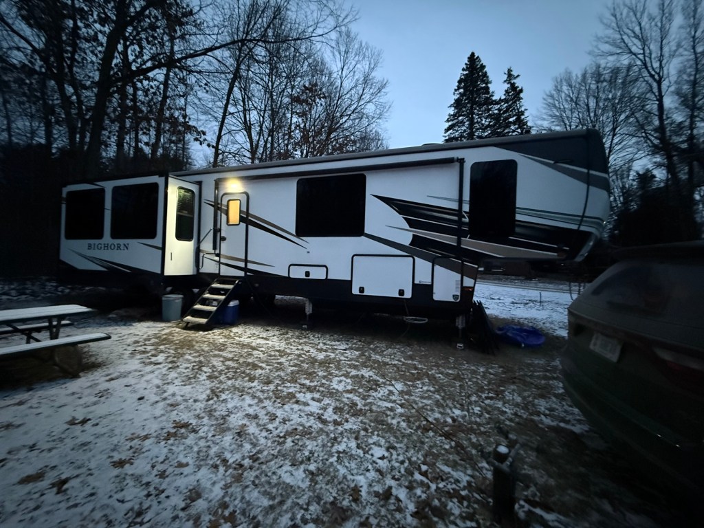 It’s rare to find a campground in Michigan that’s open during the winter. The owners of Apple Creek Campground were amazing for accommodating us in their group camping area. We were the only trailer on this side, but there were 4 others grouped together near the entrance.