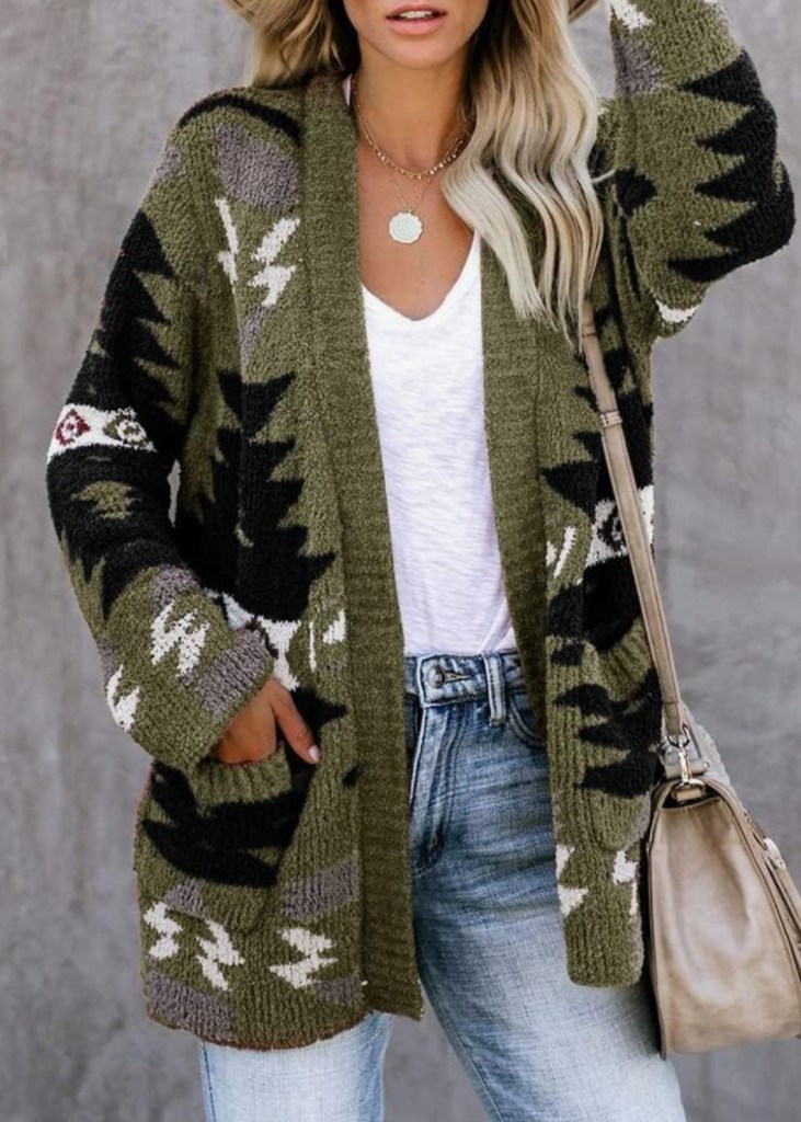 But my absolute favorite part of my new outfit is this Boho Grandpa sweater. I feel like an updated version of Mr Roger’s snuggled up in this sweater. Hannah keeps trying to steal it, but so far she’s been losing the battle.