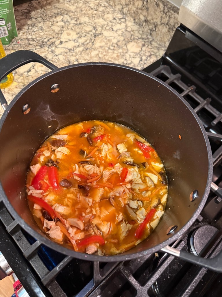 Since I made this after work, I used store bought broth and a rotisserie chicken. I know making everything from scratch usually tastes better, but sometimes convenience is necessary. Just watch your salt content.