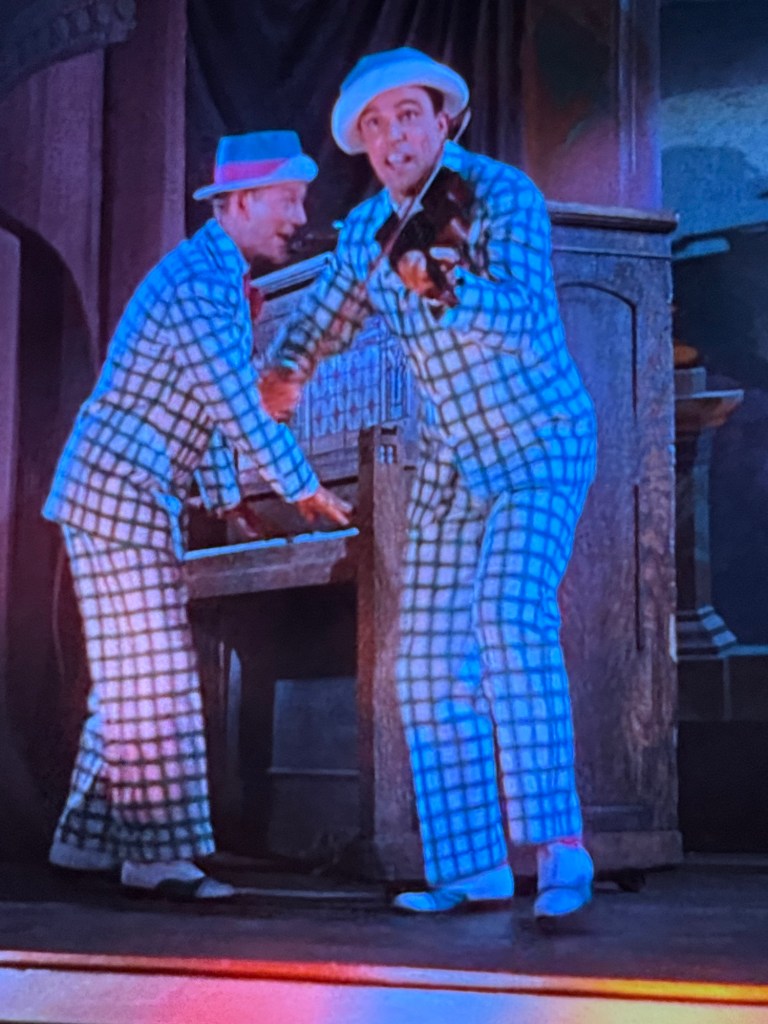 I’m pretty sure the characters Don Lockwood (Gene Kelly) and Cosmo Brown (Donald O’Connor) wanted to escape those suits. They look like someone ordered way too much material for their table cloth and decided to use the extra to make clown suits.