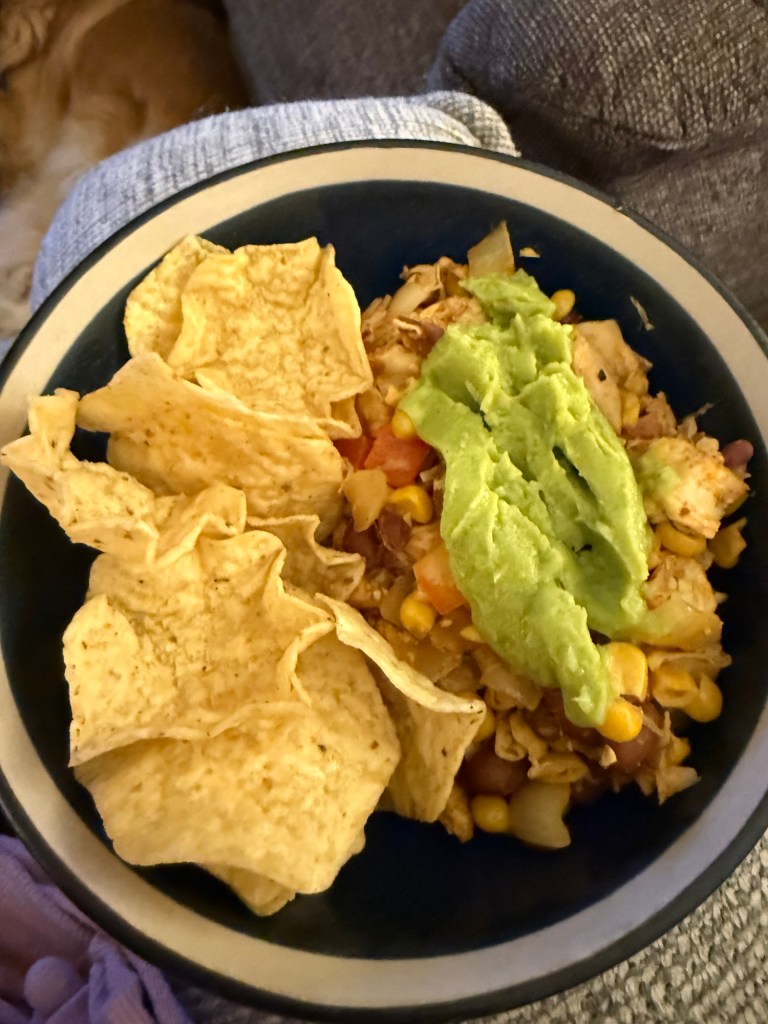 I chose to top my mine with guacamole and scoop it into tortilla chips. These may be the healthiest nachos even eaten in ages, and I have zero guilt about it. Everyone is fed, and I even got them to eat some extra veggies.